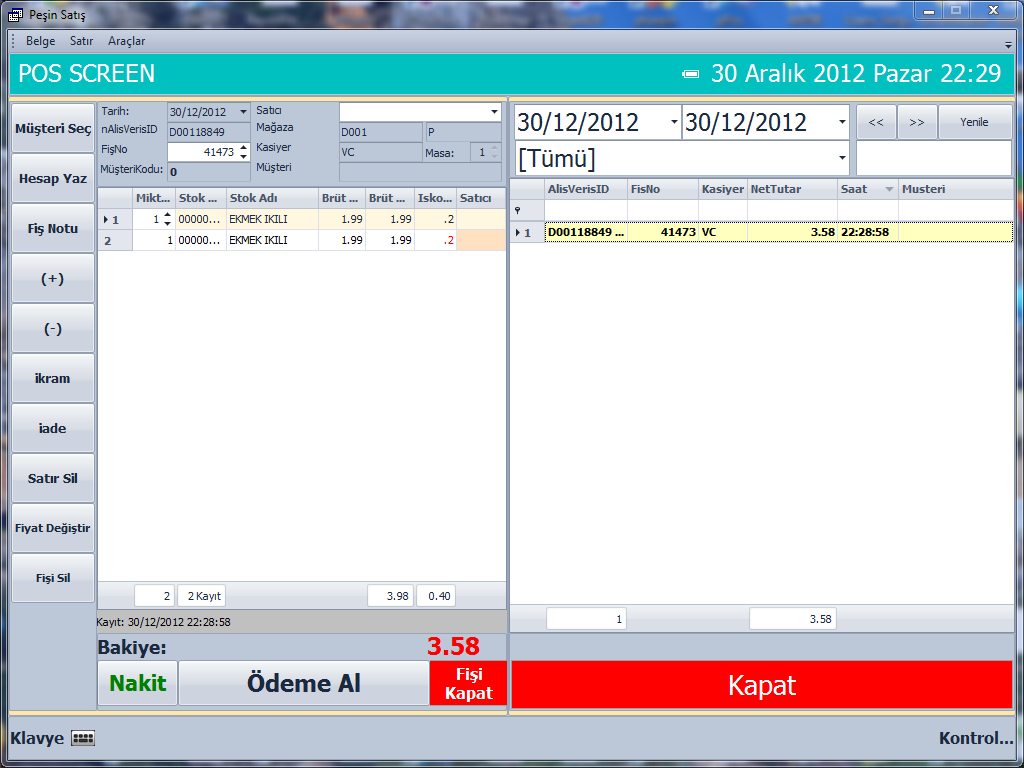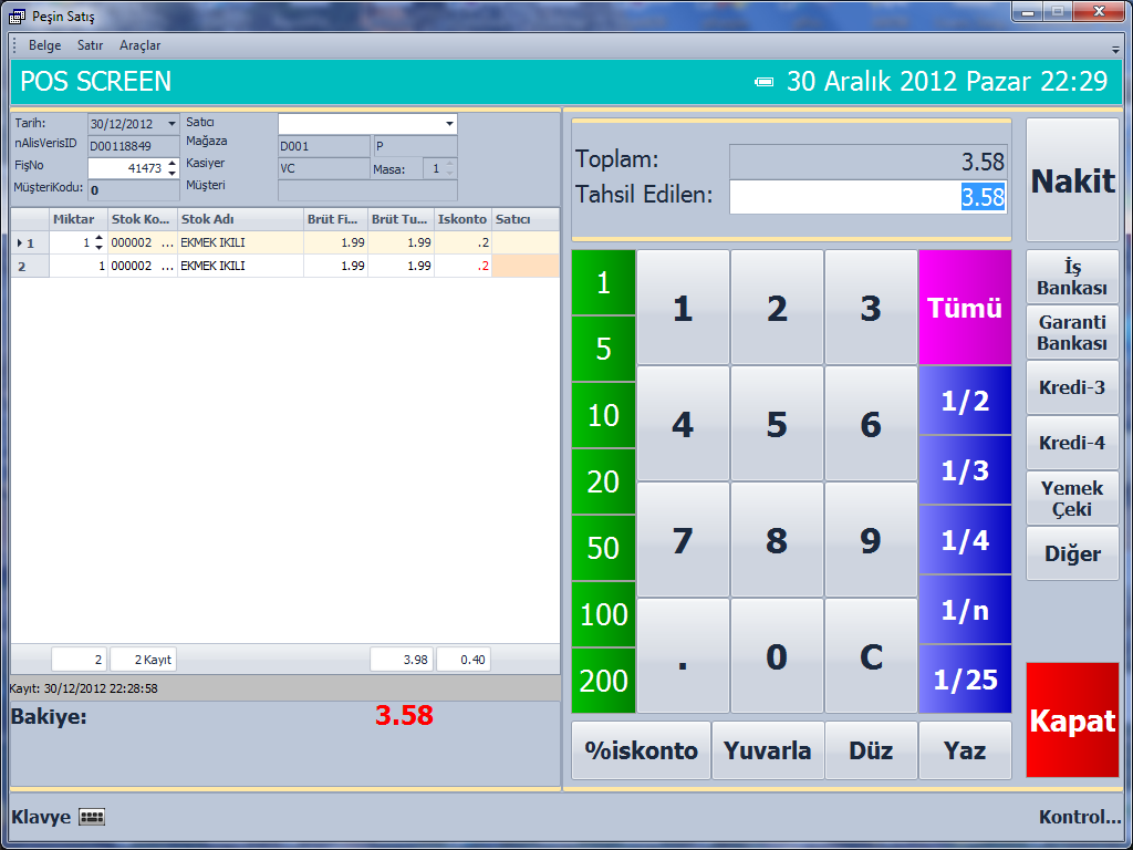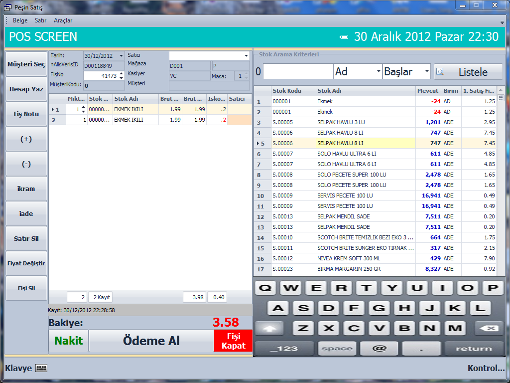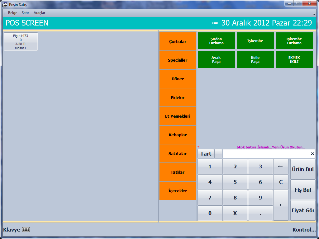 Dokunmatik Ekran Destekli Satış Otomasyonu Yazılım Ekranı Görüntüleri